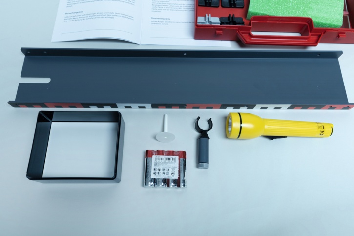 Die Mini-Box Optik enthält eine Anleitung sowie alle notwendigen Materialien zur Durchführung grundlegender Experimente aus dem Bereich Optik. Zum Lieferumfang gehören unter anderem eine Projektionsschachtel, eine Taschenlampe mit Lampenhalter, Batterien, eine Schlitzblende, verschiedene Linsen, Schirme und ein Schattenstab.